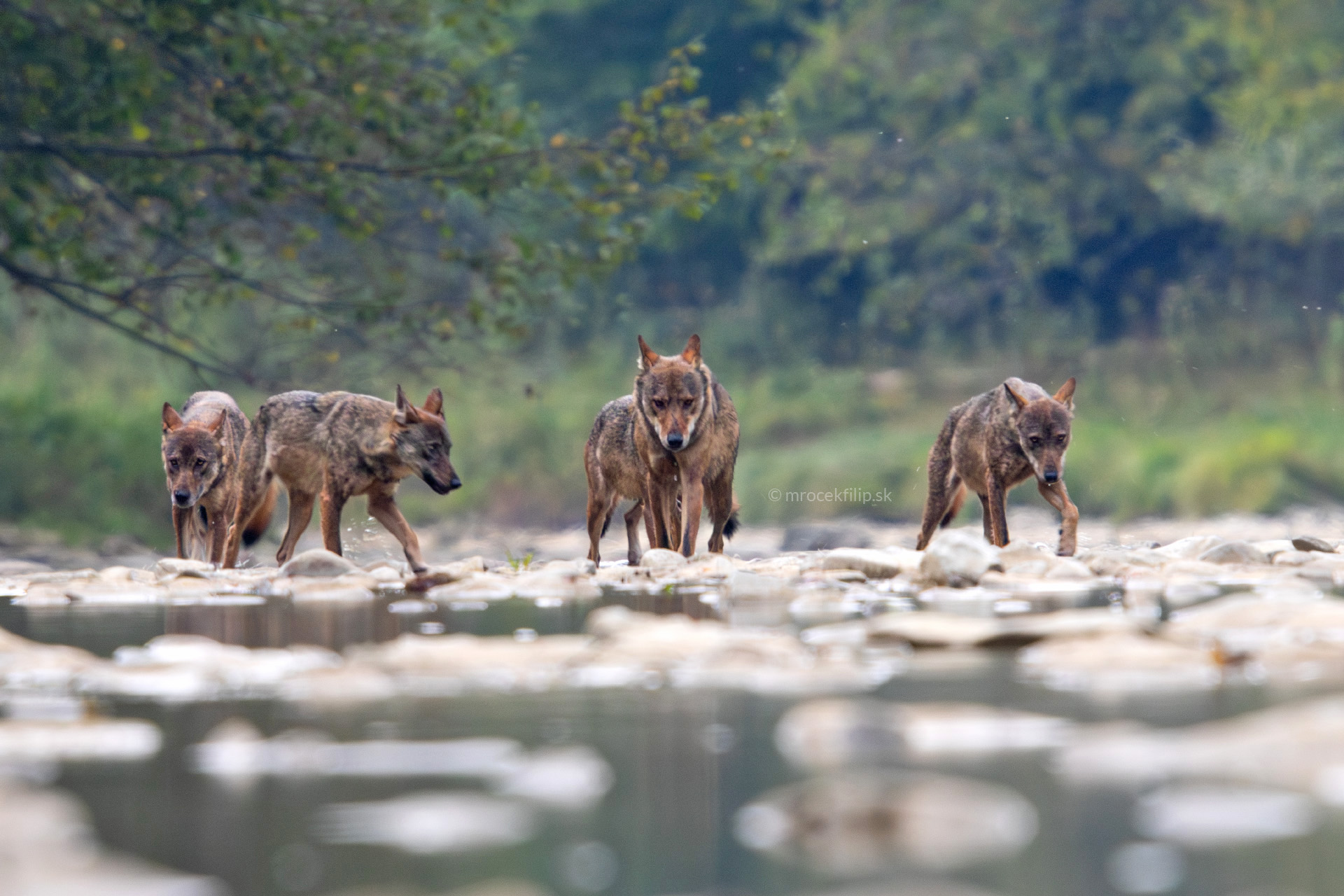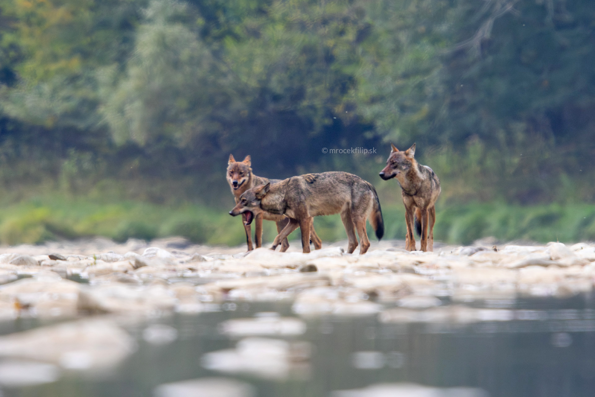 Vlk. Divoký vlk v divokej prírode. A nie je sám. Postupne z trávy na kraji rieky vychádza celá svorka. V prvých momentoch uvedomenia som paralyzovaný. Moje ruky akoby podvedome skladajú ďalekohľad z očí a automaticky sa pomaly a nenápadne približujú k foťáku. Zaostriť, nastaviť expozíciu, zachytiť tento vzácny moment, a vlky pritom nevyplašiť. To je asi tak všetko, čo mám v ten moment v hlave. Svetlo je ďaleko od dokonalého, zážitok nie.